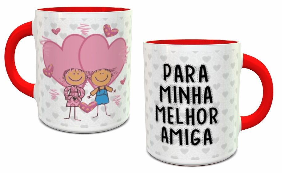 Um presente gracioso para aquela amizade que está sempre presente! Caneca com alça e fundo vermelho!